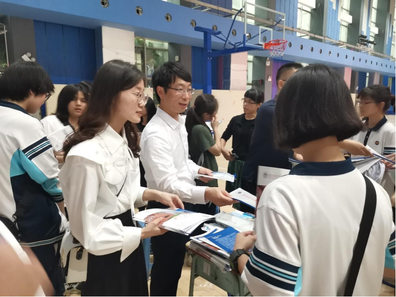 我校代表一行在南海中学体育馆举行现场招生宣传,向南海中学各年级学生发放学校招生宣传手册,讲解介绍学校办学特色、学科专业优势和招生录取情况等,并现场解答学生疑问。宣传工作吸引了众多学生的关注和咨询,为广外吸引更多优质生源发挥了积极作用。