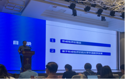 教育部大学英语教学指导委员会副主任委员、广东外语外贸大学副校长刘建达教授作了题为《基于形成性评价的大学外语教学改革》的主旨报告。报告从形成性评价理念内涵入手,结合党的二十大报告中关于教育评价改革的指导方针,以及新版大学英语教学指南中的有关议题,详细阐述了形成性评价在新时期大学英语教学改革中的历史新方位。刘教授指出,理念的变革是行动变革的先导,基于形成性评价的大学英语教学改革更加注重“以评促学”和“评即学习”。随后,刘教授以“领航大学英语系列”为例,介绍了在课堂教学中如何开展形成性评价及电子档案袋的使用。教育部“长江学者”特聘教授、上海外国语大学校长助理、语料库研究院院长胡开宝教授作了题为《语料库与话语研究:内涵、方法与个案》报告,主要从语料库与话语构建研究、语料库与话语比较研究、语料库与话语翻译中的意识形态研究及中国形象研究等多个维度,探讨了如何建设好、用好语料库资源。胡教授认为,面对ChatGPT我们要有危机意识,要认识到其背后带来的意识形态危机,加快推进我国大语言模型和语言数据资源建设。
