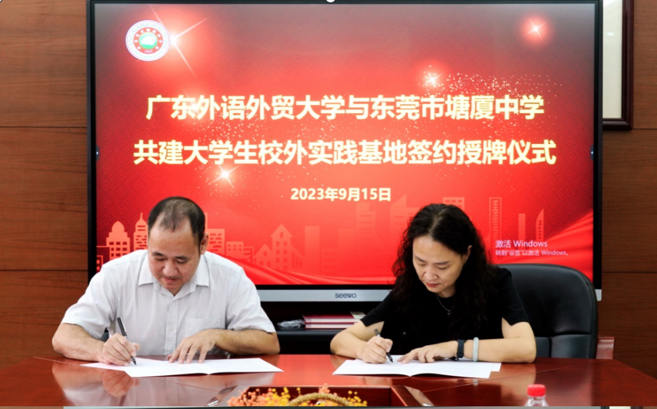 最后,签约挂牌仪式在师生们的见证下隆重举行。两校代表郑重签署了实习基地协议,并共同为实习基地揭牌。这次签约和挂牌仪式标志着我院与塘厦中学在实习基地建设方面的深入合作。双方将共同努力,为学生提供更好的实习机会和实践平台,全面提升职前英语教师培养质量。