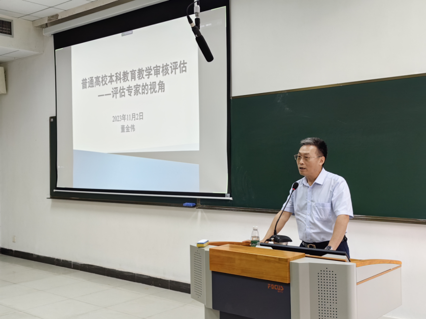 英语教育学院原院长、教育部本科教育教学评估专家董金伟教授对本科教育教学审核评估指标评建任务进行了分解解读与专业指导。董金伟教授结合审核评估工作实践,针对学院实际,介绍了审核评估的背景及主要内容,凝练了新一轮审核评估的主要特点,着重围绕指标体系,从突出立德树人、重视分类指导、重视教学改革、聚焦学生发展、引导保障体系建设等方面作了详细诠释,并就审核评估的过程与注意事项提出了宝贵的建议和意见,为我院扎实开展审核评估自评自建工作提供了指导和帮助。