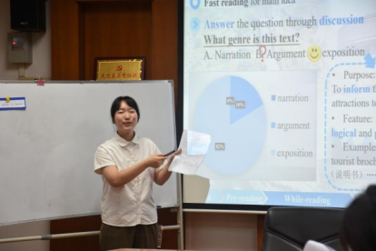 经过初赛的激烈角逐,最终有18名选手进入复赛。各选手从所给的三篇以“the culture in traveling”、“a grand old culture”、“culture diversity”为主题的统一难度的文章中自选一篇,运用富有感染力的语言以及现代化的教学手段,进行10分钟的读写课展示。各位选手教态自然得体、教学思路清晰、语言表达准确精炼,坚持以学生为中心,引导学生由浅入深进行学习与思考。