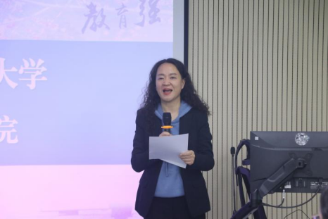 曾丹分享了自己在教学方面的心得体会。她指出,作为一名教育工作者,应当不忘初心,树立终身学习的理念,涵养家国情怀,培养教育家精神,做到“胸怀天下,以文化人”。