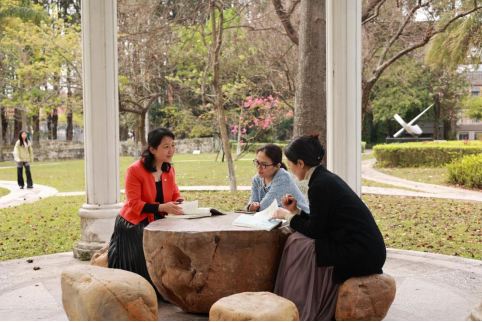 2024年3月19日,第四教学部文学文化组白云山校区任课老师周芳、周静、陈静、栗萍等在春日盎然的校园开展了一场别开生面的小型教学研讨会。会上,老师们交流了各自所教的中文学院班级的学生特点,分享了这学期以来使用周芳老师主编的新教材《英语文学名篇欣赏》的心得体会,并共同探讨了英语文学课程的教学理念和方法。