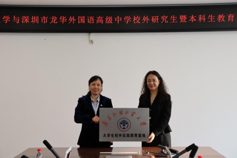随后,广东外语外贸大学英语教育学院院长吴岩与深圳龙华外国语高级中学书记王宏莉共同签署了共建研究生及本科大学生校外实践教育基地的合作协议。这一举措标志着双方院校正式确立了在学生实习实践方面的深度合作关系,旨在通过共享教育资源和实践经验,为在校大学生提供更为广阔且针对性强的教学实践平台,进一步提升学生的专业素养和社会适应能力。