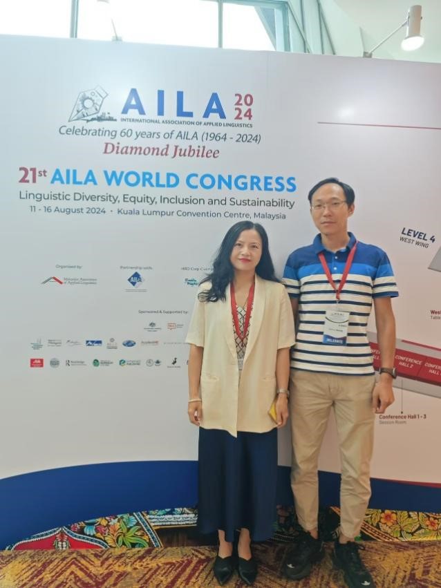 2024年8月11-16日,由国际应用语言学学会主办、马来西亚应用语言学会承办的第二十一届世界应用语言学大会(AILA 2024)在马来西亚吉隆坡召开。本次大会吸引了来自全球70多个国家和地区的上千名学者以线上与线下并行的方式共襄盛宴,并围绕“语言多样性、公平、包容与可持续发展”的大会主题,通过主旨发言、特邀专题研讨、工作坊、论文宣读等形式展开了广泛、深入的交流。我院教师谢剑萍和黄恩谋应邀参加会议并宣读论文。