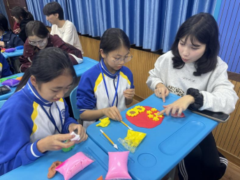 预科生们首先抵达广外乳源实验学校,与当地的初中生开展了一次别开生面的班级活动,共同用黏土创作了一系列以爱国为主题的作品,激发了大家的爱国情怀。在创作过程中,同学们积极分享各自的学习生活、文化习俗以及梦想追求,欢声笑语不断,迅速拉近了彼此的距离。整个活动现场洋溢着亲切友好的氛围,充分展现了团队合作的力量和集体创作的乐趣。