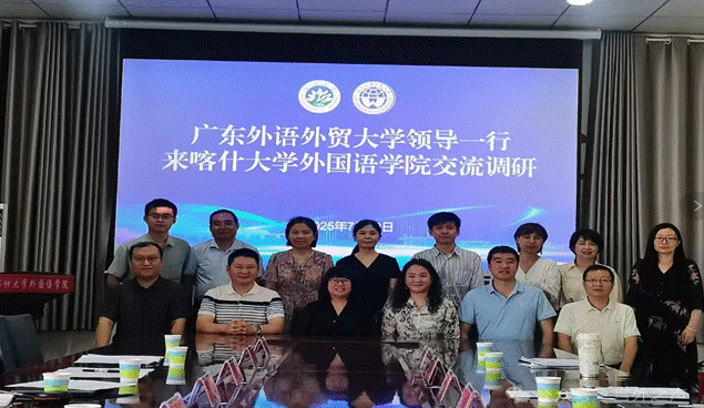 7月12日,广东外语外贸大学英语教育学院院长吴岩、商学院党委书记肖锋、新闻与传播学院党委书记商杰强、法学院党委副书记范聪、教育系主任刘之远以及辅导员周靖凯、王文宇一行赴喀什大学开展交流调研。喀什大学外国语学院院长范姣兰、教育科学学院副院长谢娜、法学院党委副书记李宏斌、新闻传播学院教研室主任贺义荣等参加座谈。
