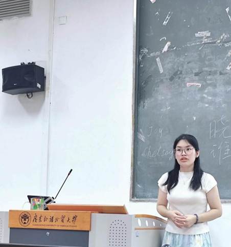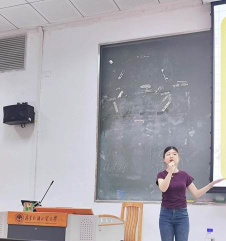 随后,英语(英语教育)专业大二学生梁汝晴以真实的学生案例为切入点,介绍了“户外口语活动”这一特别的上课方式,引导学生积累生活素材,并利用创新的游戏设计与操作,更好地衔接学习内容。