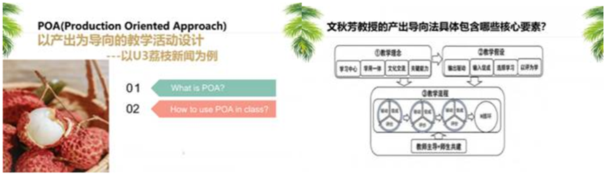 肖衡碧老师将文秋芳老师的POA理论运用到教学实践中,精心挑选素材,组织学生进行口语输出,通过反复练习,加强学生的文化意识和小组合作意识。肖老师还鼓励学生学以致用,活学活用课本上学到的直播带货的新闻,期末口语考试让学生们进行前所未有的线上英语直播带货模式,激起了学生学习英语、使用英语的强烈兴致。