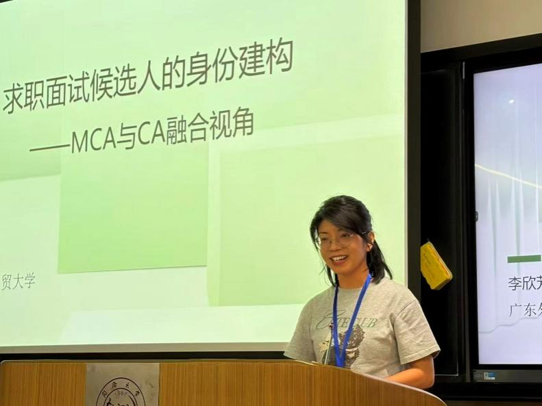 李欣芳老师发言题目是“求职面试候选人的身份建构:MCA与CA融合视角”。研究将会话分析(CA)与成员类别分析的方法进行了整合,将身份视为候选人在特定序列位置通过话轮设计实时完成的交互效果。研究旨在回答以下三个问题:1) 求职者如何在话轮设计中部署成员身份类别资源以建构具体身份?2) 这些身份建构行为出现于何种序列环境?3) 它们在局部互动中实现何种交际功能?本研究发现丰富了机构互动中身份研究的微观描写工具,验证了MCA和CA结合的分析框架在职场机构互动中的适用性,也为招聘方识别候选人话语策略以及为求职者提升身份管理技巧提供可操作的互动依据。