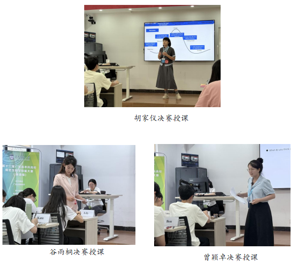本次大赛是广东省内英语师范专业最高水平的赛事,全面考察选手的教学设计、课件制作、模拟授课及现场问答等综合能力。本次大赛赛制严谨,极具挑战。选手需在60分钟的封闭准备期内,独立完成指定材料的教学设计与课件制作,随后立即进行2分钟的说课和10分钟的模拟课堂授课,并对现场抽取的问题进行作答。我院三位选手以地道的口语表达、创新的教学理念、娴熟的课堂驾驭能力,饱满的教学热情和出色的临场应变能力,赢得了评委们的高度认可。