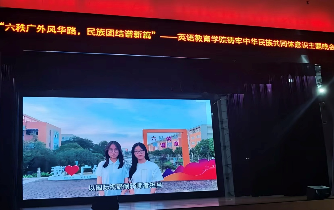 六十载栉风沐雨,一甲子初心如磐。时值广东外语外贸大学六十华诞,为深入贯彻落实党中央关于民族工作的重大部署,以党建引领推动铸牢中华民族共同体意识融入育人全过程,12月18日晚,广东外语外贸大学英语教育学院党委以晚会的形式,精心策划举办“六轶广外风华路,民族团结谱新篇”主题党日活动。活动以多元艺术形式搭建民族团结交流平台,既营造了校庆喜庆祥和、团结奋进的浓厚氛围,更以生动实践诠释了中华民族“多元一体”的深刻内涵,彰显了学院党委为党育人、为国育才的使命担当。