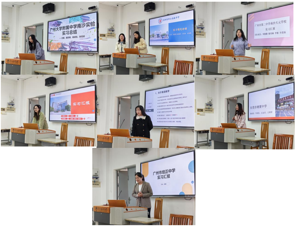 随后,来自七所实习学校的实习生代表:汪媛、陈雪颖、许思扬、王金凤、黄倩霞、李园园、曹丽娟、王婷婷分别从职业素养塑造、情感意志磨炼、专业能力提升等方面,做了详细而生动的实习成果汇报。她们在肯定实习成绩的同时,也表示应对极端个性化教育案例时仍需积累经验,教育研究的实践转化能力仍可进一步提升。