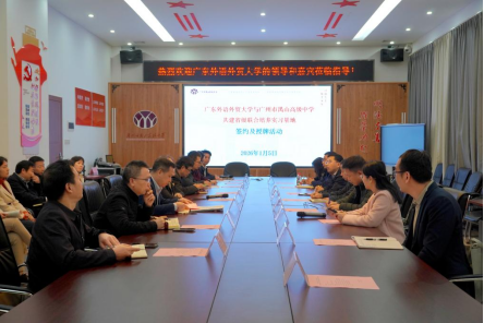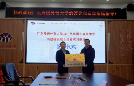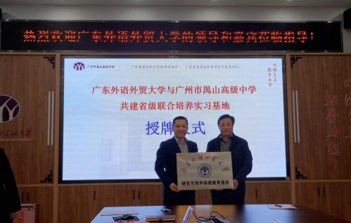为深度融合高校人才培养与社会人才需求,协同提升英语、数学、思想政治教育专业人才的实践能力与综合素养,2026年1月5日下午,我校与广州市禺山高级中学成功举行大学生校外实践教育基地签约仪式。广东外语外贸大学英语教育学院副院长李惠胤教授、刘亮星教授、师范系主任谢剑萍教授、科研秘书、研究生辅导员吴世傲;数学与统计学院院长王军威教授、数学教育系主任杨超副教授、团委书记薛达;马克思主义学院院长毛国民教授;广州市禺山高级中学校长林少媚、副校长安华宇、教研处主任王联新、教导处主任文自敏、教导处副主任李君亮、教导处跟岗干部黎慧敏、曾露娇、校外导师龚泽南、孔欢、王林轩、江凌云、叶俊志出席签约仪式。