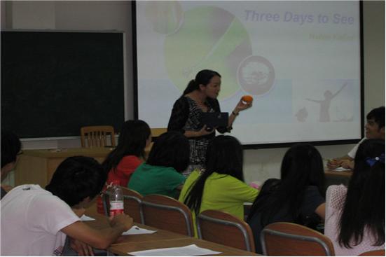 曾丹热情的课堂风格、优秀的语音语调,一直都广受学生们的好评。经贸学院的黄桂桃同学就这样评价:“曾丹老师英语很厉害。她是一个很可爱的人,跟全班都玩得很好很开心。”