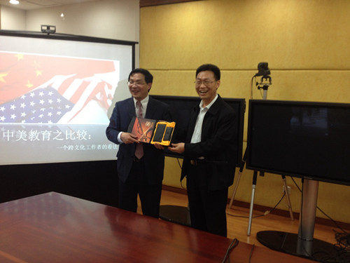 2015年3月23日下午3:40到4:40,本学期第一期“英语教育大讲堂”在广外行政楼第一会议室如期举行。来自美国乔治福克斯大学的副校长Thomas Peng以“中美教育之比较:一个跨文化工作者的看法”为题分享了他的看法,讲座由英语教育学院副院长吴岩主持,参加讲座的主要是对中美教育感兴趣的师生。