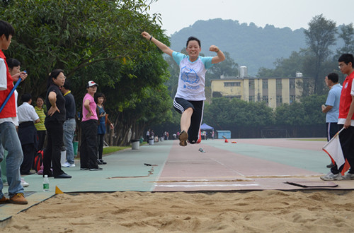 下午的比赛同样精彩,我们英教的老师们继续秉持着英教坚持到底的体育精神进行下午的比赛。在女子教工中年组立定跳远的决赛中,我院周小薇老师在其他老师的倾力支持下超水平发挥夺得最终的冠军,胜利的喜悦又一次洋溢在英教人的脸上。而跳远项目我院老师同样发挥出色,青年组魏海苓老师在前两轮都犯规失败的情况下,紧紧最后一跳的机会完美地完成动作,最终夺得了“一人之上万人之下”的宝贵亚军。而张艺琼老师也夺得了第4名,中青年组柯晓玲主任第5名,江键老师第6名的好成绩。而在800米和1500米的长跑项目中,英教的大家长们纷纷取得佳绩。在女子教工青年组800米决赛中,薛媛老师和吴岩吴院长分别夺得了第3名和第4名,男子教工中青年组李崧老师取得第3名,中年组刘会英老师取得第4名