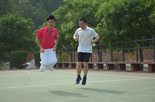当体育场上的各种扣人心弦的比赛激烈进行时,镜头的另外一边正洋溢着各种各样天真烂漫的笑脸。趣味运动会让老师们抛开一切工作、生活的压力与烦恼,尽情地享受体育运动带来的乐趣。我们学院的老师们通力合作分别完成了袋鼠跳接力赛、单脚火车跳、往返接力运球上篮等比赛项目。学院老师们无分彼此,精诚合作,为了团队竭尽全力完成每一项比赛,把团队精神发挥得淋漓尽致。老师们“肆无忌惮”的狂欢打造了一个欢笑的海洋,体育运动的乐趣感染着每一个人。