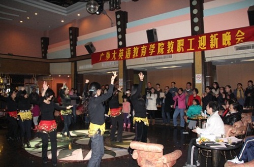 2013年1月7日,天气十分给力,昨天还是阴冷且刮着寒风的天气,今天却变得暖和且阳光灿烂,英语教育学院2012年期末迎新晚会在从化市翠岛度假村如期举行,参加本次晚会的有学院党政领导全体成员及80多位教职工,人事处谢文新副处长及两名外教也应邀出席了本次晚会,晚会由我院陈媛媛、刘亮星两位老师主持。