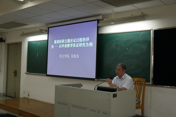 5月9日,英语教育学院荣幸地邀请到英语语言文化学院的吴旭东教授为英教师生做了一场主题为“重视科研立题论证过程的评估——以外语教学实证研究为例”的主题讲座。讲座于下午三点半在教学楼G206举行,由英语教育学院肖建芳副院长主持。英语教育学院林绍雄书记和陈金诗副院长以及学院师生聆听了本次讲座。