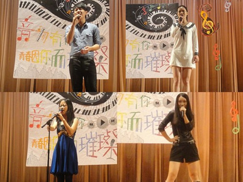 10组选手经过初赛的激烈角逐,实力相当强劲。舞台上选手们个个个性十足,曲风独特,歌声时而悠远轻灵,时而激昂高亢,呈现了一场完美的音乐盛宴。1号选手张晓玲顶住首个出场的压力惊艳亮相,充分展现了她的个性与活力;3号选手戴安妮和9号选手钟迪的深情演唱感染了在场的所有老师和同学们,现场爆发阵阵欢呼掌声和激情的尖叫;7号选手陈依榕则以甜美动听的歌声打动了全场观众赢得了最佳人气奖;其他选手的深情演唱也同样使学活现场气氛不断升温,场面活跃非凡。