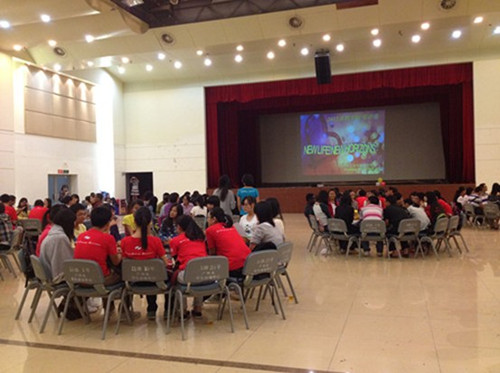 在Free talk环节中,同学们以“college life”为主题,互相发表自己的感受。其中,留学生们的分享最受同学们的关注,同学们在相互对答中碰撞出了无数火花,欢乐的气氛弥漫全场。活动最后,全场同学集体跳兔子舞,2012年广外大学英语文化月英语角活动到此完满结束。