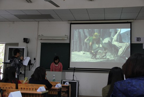 在进行现场抽签、十五分钟的准备之后,来自各个学院不同班级的10支参赛队伍,展开了一场影视英语即兴配音的大比拼。来自经贸学院首先出场的一号队伍先声夺人,无论是发音还是语调,都与《怪物史莱克》的原版极其相似,一些途经比赛现场的同学好奇地回头张望,他们还以为是在放原版电影呢。