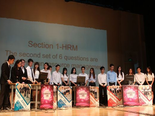 比赛分为必答、抢答及团队展示三部分。必答题的题目设置范围涵盖会计、商业、经济、营销、管理等,主要侧重理论英语和基础知识的考查。