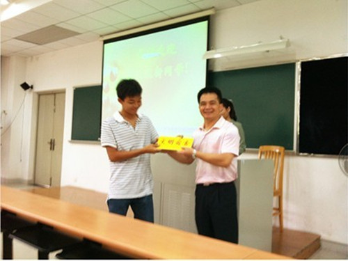 上课伊始,林绍雄书记为2011级新生军训的先进个人与文明宿舍颁奖,林书记对他们表示了肯定同时要求他们继续努力鼓励其他学生想他们学习,互帮互助,一起进步。