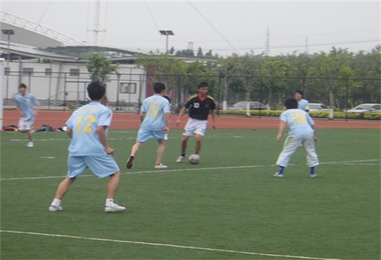 3月22日17点30分,2011年“广外杯”足球赛在田径场正式拉开帷幕,我院与法学院共同为本届“广外杯”打响第一炮。第一场比赛,双方都持着试探对方实力的心态进行比赛,而其中的上半场我院主要以防守为主。见势,法学院向我队发起猛攻。开局10分钟左右,我队“龙门”失守,法学院前锋率先入球得分,法学院以1:0领先。随后我队继续以防守为主,但终究抵挡不住法学院的猛烈进攻,比分被拉至3:0。虽然比分被拉大,但我院队员不甘落后,仍然奋勇拼搏,最终在上半场结束前,中前卫吴福辉接应前锋钟迪的传球,大力抽射,球进了!我队将比分差距拉小,以3:1结束上半场的比赛。
