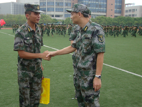 9月13日上午10时,我院党委副书记易宗勇、团委书记迟殿凤等来到了军训场地,亲切地慰问了正在艰苦训练的我院10级新生们。