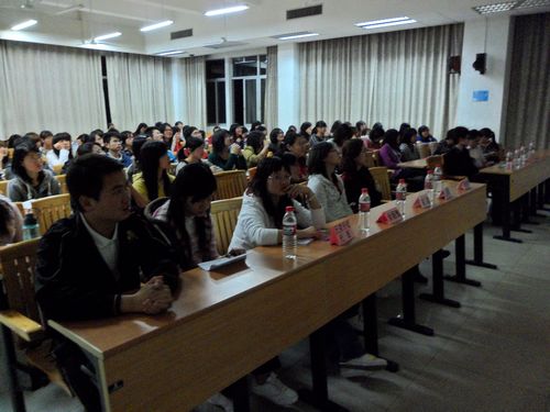 然后,大会进入各位同学最为关注的环节——师兄师姐为同学解疑。首先由关海银师兄为我们详细讲述关于专四的一系列问题,包括专四的题型,专四的应对技巧以及英语学习中应注意的问题和怎么学好英语。他重点解说了做好listening,speaking 和writing等方面的技巧,并提出了一些切实有效的方法。其次,黄少卡师兄就如何过好大学生活说出了自己的心得体会,并就有关普通话,计算机二级的考试为同学们指点迷津。他指出“三要”和“三不要”,即:要多看书,要定计划,要多学习;不要过于热衷搞活动,不要沉迷于电脑网络,不要随波逐流。他的忠告让在场的每位师弟师妹受益匪浅,也赢来了阵阵掌声。接着,袁伟红师姐则对4+0双专业和辅修进行了详细的解释,她说:“这些如何选择,很大部分是由个人兴趣决定的。如果没有兴趣,就算选择了,也不一定能坚持下来,要及早做好人生的规划,确定自己要做什么,并不断朝着这个方向努力。”袁师姐的讲话令在场的各位茅塞顿开,也明白了人生如何取舍的道理。最后,蔡宇翔师兄则着重从公务员的考试方面进行基本介绍。他告诉我们要考些什么,什么时候就应该着手复习,以及在考试中要注意哪些问题等等。