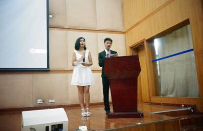 大赛在董金伟院长的热情洋溢的致辞中拉开帷幕。同学们热情高涨,现场的气氛被董院长的一段英文致词引到高潮。“...I think this kind of activity can benefit all of us. Firstly, Iwant to express my heartfelt thanks to all of the teachers of this course...andI wish a great success to today’s final contest...”董金伟院长引经据典表示了对此次英语新闻视频大赛的希冀,以及对各位参赛选手的肯定和祝贺。