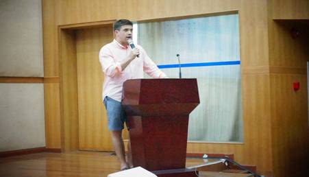 最后,由外教Brian Dennis对本次大赛做精彩点评,并给出意见和建议,使无论是才赛小组成员还是台下观众都获益匪浅,现场也因为外教的幽默讲话而掌声雷动。大赛尾声评委和所有参赛成员在台上亲切合影,为此次英语新闻视频大赛拉下帷幕。