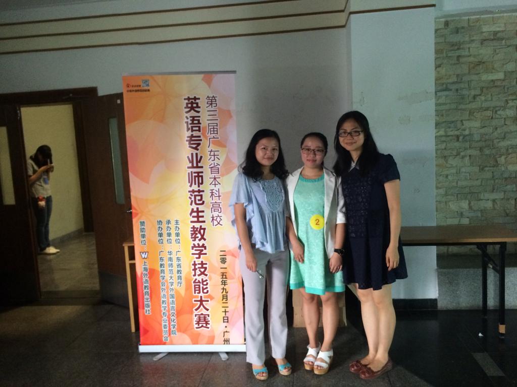 9月20日,第三届广东省本科高校英语专业师范生教学技能大赛决赛在华南师范大学石牌校区圆满落幕。本次比赛由广东省教育厅主板,来自全省27位选手进行了为期一天的激烈角逐。我院参赛选手伍诗婷和赖思婷以优异表现分别获得二等奖和优秀奖的好成绩。我院董金伟院长应邀担任此赛事督导,教育系谢剑萍主任和吕琳琼、龙艳两位指导老师亲临比赛现场,为选手加油助威。