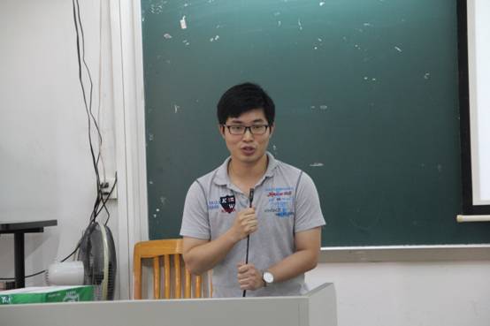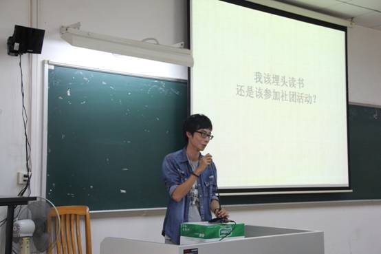 黄崇本是广外商学院毕业生,但他表示英教学院的良师对自己有很大的影响,自己回来是为了感恩。他在现场分享了自己的社团经历累积和工作经验感触,他提出,人都是处于“自卑—自强—自信—自大—自谦—自卑”这样一个循环的模型中。