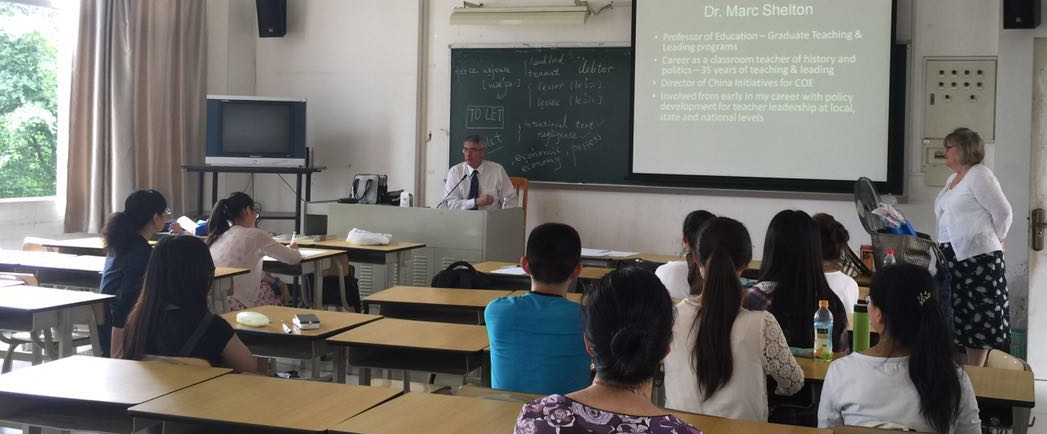 考试开始前,Mark Shelton 与Carol Brazo两位教授分别介绍了乔治福克斯大学的基本情况以及与英语教育学院合作的MAT 3+1+1项目的主要内容,并就本项目学生在美国的学习、生活和就业等方面问题进行了细致的讲解。此外,还现场播放了来自该项目学生录制的在乔治福克斯大学的学习与生活视频,增强大家对该项目的直观了解。