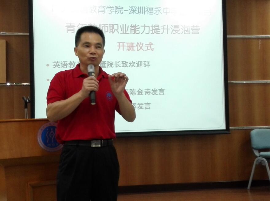 8月21至24日,由我院主办的“深圳市福永中学青年教师职业能力提升浸泡营”在广外北校区MBA中心如期举行。此次培训为期四天,为福永中学约40名青年教师十天岗前培训的压轴之旅。此次培训旨在更新中学教师的教育观念、改进教学手段和教学方法,提高教学能力,增强职业发展能力,不断拓宽教育国际化视野,使教师的综合素质逐步适应课程改革的需要,大力促进基础教育改革的深化。英语教育学院和深圳福永中学的相关领导参加了此次培训。