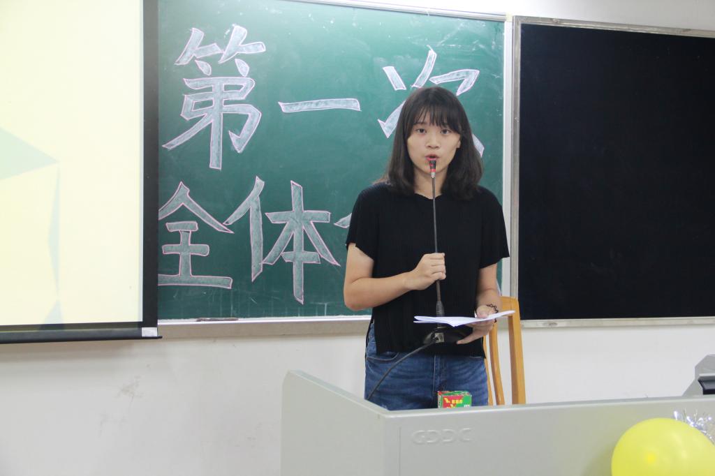 徐昶斌致辞后,宣传部干事刘丝嘉作为新干事代表上台发言。她代表所有干事,表示会努力负起团学的责任,帮助团学越做越好。随后,各部门干事也分别上台做自我介绍。不同风格的介绍使得现场气氛十分热烈。