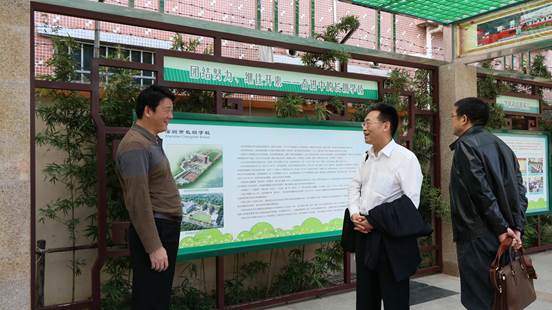 稍作休整后,10号下午,董金伟院长一行十人又赶往数十公里外的深圳改革新区——光明新区,参观深圳市长圳学校。该校由1949年成立,有着悠久人文历史,但在深圳教育日新月异的大背景下,作为领头人的叶兆波校长急需英教团队前来为该校国际化道路出谋划策。这个下午,英教教师参观了长圳学校校园文化走廊,实地勘探了在建的教学楼、办公楼、体育馆,并深入座谈。交谈中,董金伟院长、吴岩副院长、周富强教授、郭进军主任等纷纷从硬件设施建设、软件设施配备、校园文化活动开展、国际项目设计等不同角度,为长圳学校的国际化道路出切实可行的好路子。对此,叶兆波校长深受启发和鼓励。可见的是,在深圳这片以加速度建立的新区上,不久的未来,一个带着古老历史走来的学校会在其发展的道路上,透露着广外英教人曾经智慧的光芒及走过的痕迹,不久之后,来这里实习的英教学子也会把真知带入校园,把国际化的种子撒入孩子们心中。