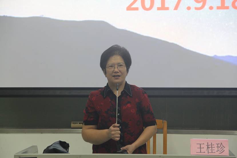 2017年9月18日晚上7点,我院有幸邀请到英语语音语调专家王桂珍教授到教学楼G207做演讲。讲座主题为学习语音语调、 提高听说能力。出席本次讲座的还有英语教育学院党委副书记徐昶斌、教育系教师肖建芳、黄辉和魏海苓。参加此次讲座的学生还有英教大一全体新生以及其他学院的英语爱好者。讲座还未开始,现场已座无虚席。