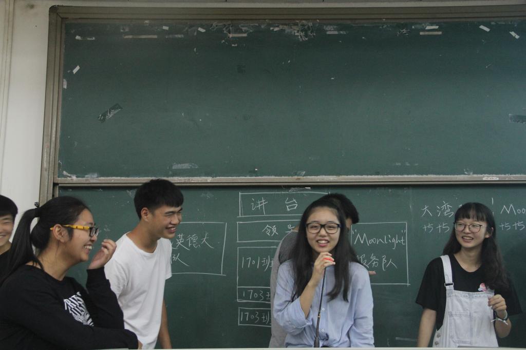 紧接着进行展示的是moonlight三下乡服务队。两位队长向同学们介绍了moonlight服务队的服务基地、服务队伍、义教特色、活动详情以及对他们的收获进行了总结。在此次三下乡活动中,moonlight服务队致力于通过新颖的教学方式,激发学生英语学习兴趣。为此,他们开设了英语、文化、自然、艺术等一系列特色课程,从而丰富学生知识,提高学生动手能力。同时,在学习之余,moonlight还为同学们开展了游园会等一系列课外活动,开拓了同学们的视野,寓教于乐。在这次三下乡中,队员们收获到了同学们的爱,队员之间的友谊以及团队协作的精神。最后,moonlight全体队员合唱了歌曲《告白气球》。