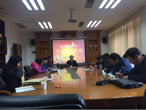 2018年1月9日下午,英语教育学院2018年干部培训会在南校区院系办公楼245会议室召开,由学院党委书记林绍雄同志主持,学院领导先后对系部主任、教工党支部书记提出了殷切希望,要求学院干部立足实际,长远规划,谋学院特色发展、可持续发展之路。