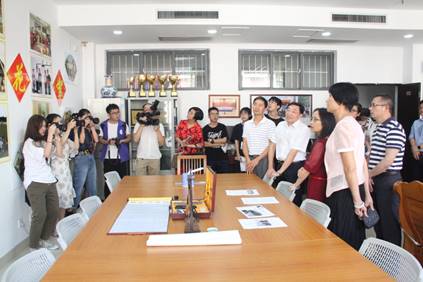 谢岩梅一行莅临我院“职工小家”,参观我院开展的工会活动图片展,对我院工会工作取得的成效赞不绝口,杨敏生介绍了学院教职工的基本情况、主要特点和学院“以师生为中心” 的群团工作理念,曾国华简要介绍“职工小家”建设及开展活动的情况,学院以“职工小家”为载体,定期组织各种联谊和文体活动,包括由曾赴孔子学院任教的苏春教师教外教书法、组织下围棋、集体包饺子、教工交流谈心等活动,“职工小家”成为教职工喜爱的温馨小家。