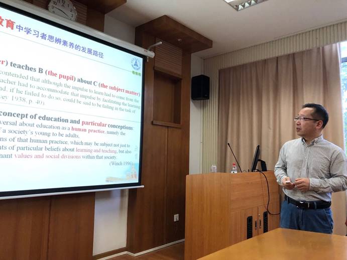 10月29日下午,来自中南财经政法大学的阮全友教授于大学城校区院系楼245会议室开讲“高校英语教育中学习者思辨素养的发展路径 ”。本次讲座是人事处、教师发展中心主办的云山教师沙龙第104讲,由英语教育学院承办,校内外师生参与了本次讲座。