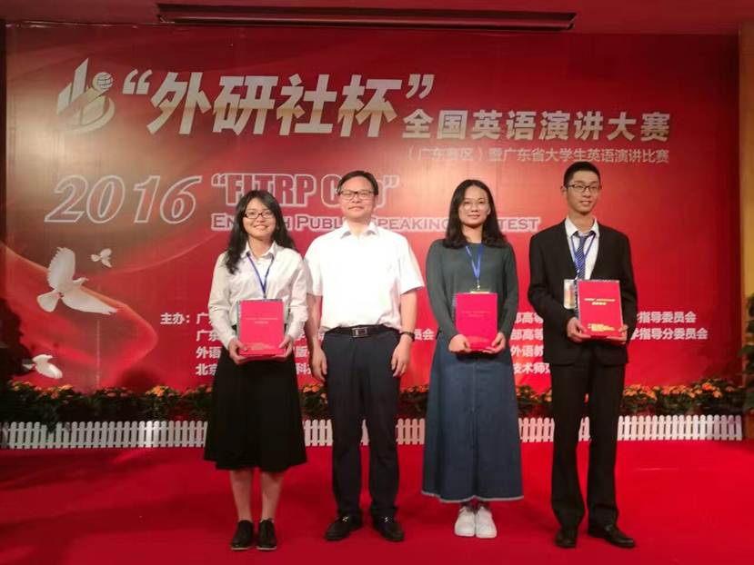 杨家玮同学荣获2016年“外研社杯”全国英语演讲大赛暨广东省本科高校大学英语演讲比赛冠军