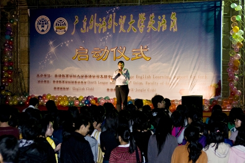 4月22日晚7时30分,广外英语角启动仪式在微风细雨中进行。此次启动仪式在南校区隧道口广场展开,由英语教育学院大学英语学习支持中心、英语森林俱乐部、英语俱乐部、英语教育学院团委和学生会等联合举办。此次活动吸引了许多热爱英语的师生,包括从各地赶来的外国友人参加。校长仲伟合、教务处处长詹文都,英语教育学院院长周富强、学院党委书记袁长青等出席了启动仪式。