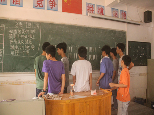 同学们正在认真地猜灯谜