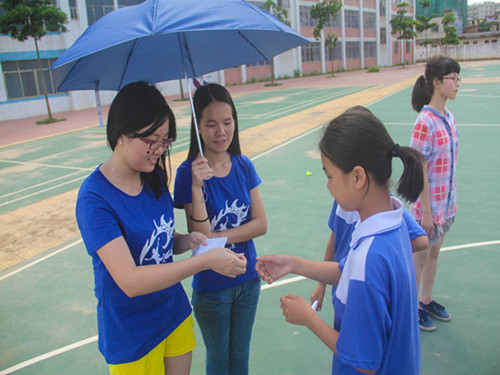 2014年7月19日下午2点半,望埠“心之望”服务队在清远英德望埠初级中学开展了妙趣横生的游园会活动。本次游园会共包含11个项目,在校同学们可以通过参与游戏获得贴纸凭证的方式在活动结束后换取相应的精美礼品。活动后,同学们都表示非常沉醉于本次活动中,满足地拿着自己喜欢的礼物回家,结束了本周的学习。