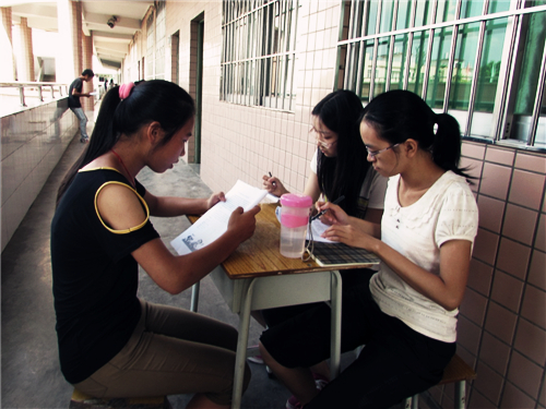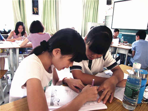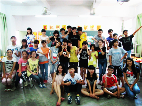 今天是大湾服务队有安排上课的最后一天,初二(2)班的孩子们都早早地来到教室,几个经常迟到的孩子也准时地坐在座位上等待早读,看得出他们都很珍惜夏令营的最后一天,都想以最好的表现来给老师和同学留下一个最好的印象。